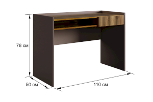Корпус стола выполнен в цвете кашемир, что придает ему современный и спокойный вид, легко сочетающийся с любым интерьером. Выкатной ящик в цвете "дуб крафт золотой", декорирован принтом, имитирующим вертикальную фрезеровку, что добавляет столу уникальности и роскоши.
