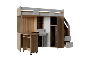 Благодаря универсальной сборке и универсальному углу, эту кровать-чердак можно легко адаптировать под планировку комнаты. Значит, даже в небольшой комнате она будет смотреться уместно и не займёт слишком много места, оставив пространство для игр или других активностей.